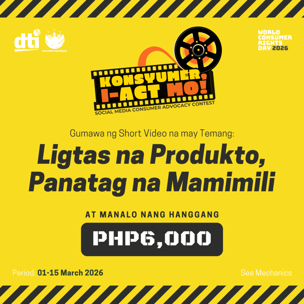 Gumawa ng short video sa pamamagitan ng pag-ACT ng iyong CONSUMER RIGHT TO SAFETY at manalo nang LIMANG LIBONG PISO (Php5,000.00)!